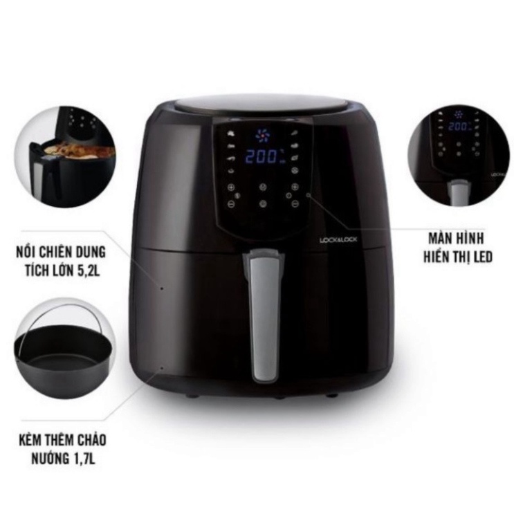 Nồi Chiên Không Dầu Điện Tử Lock&Lock EJF357BLK , EJF357WHT (5.2 Lít) - Hàng Chính Hãng