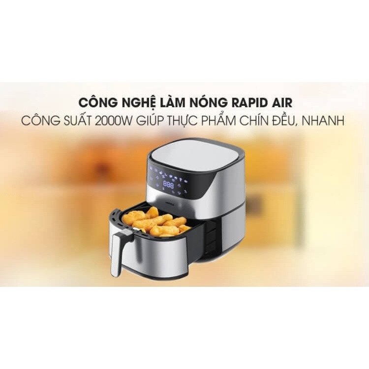 Công nghệ làm nóng rapid air cùng công suất 2000W làm nóng nồi nhanh, giúp thức ăn chín mau, tiết kiệm điện.