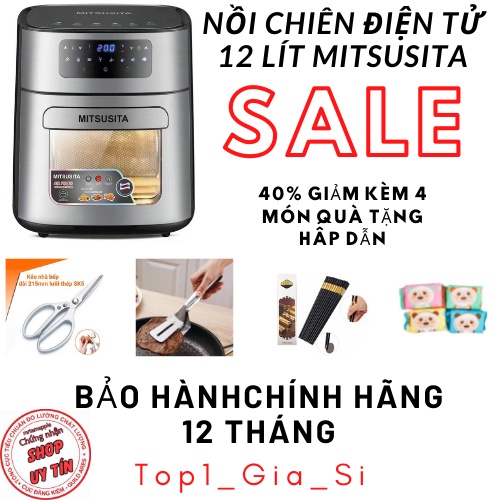 NỒI CHIÊN KHÔNG DẦU ĐIỆN TỬ MITSUSITA 12Lit ( Bảo Hành 12 Tháng )Sản phẩm đi kèm 4 món quà tặng
