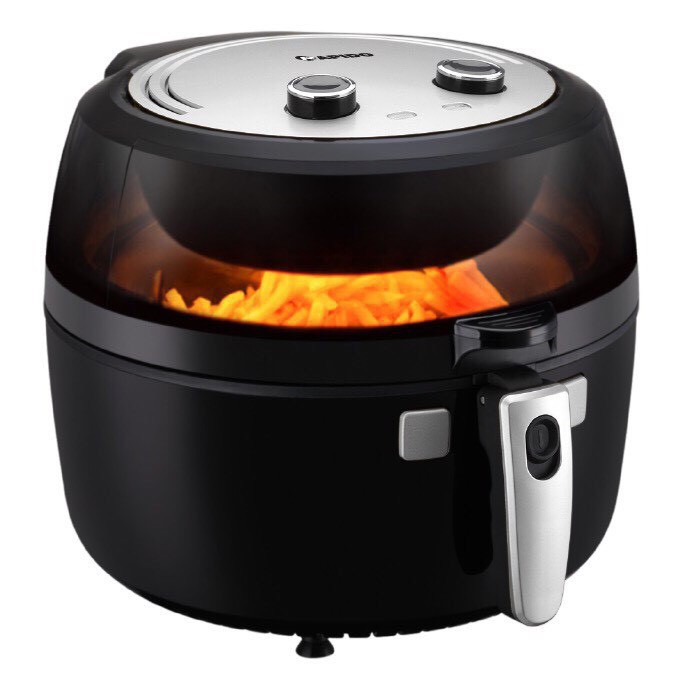 - Mặt kính cường lực trong suất chịu nhiệt cao, người dùng có thể dễ dàng quan sát quá trình thực phẩm được chiên từ đó điều chỉnh nhiệt độ và thời gian phù hợp.