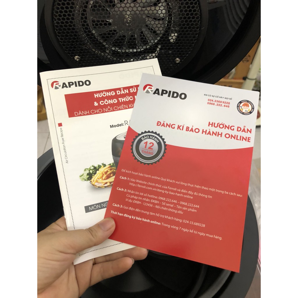 Nồi chiên không dầu điện tử RAPIDO model RAF6.5D 1800w dung tích 6,5 lít - Bảo hành 12 tháng toàn quốc
