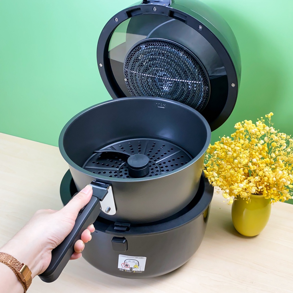 - Nồi chiên không dầu hoạt động trên không khí nóng nên không cần dầu, mỡ chiên.
