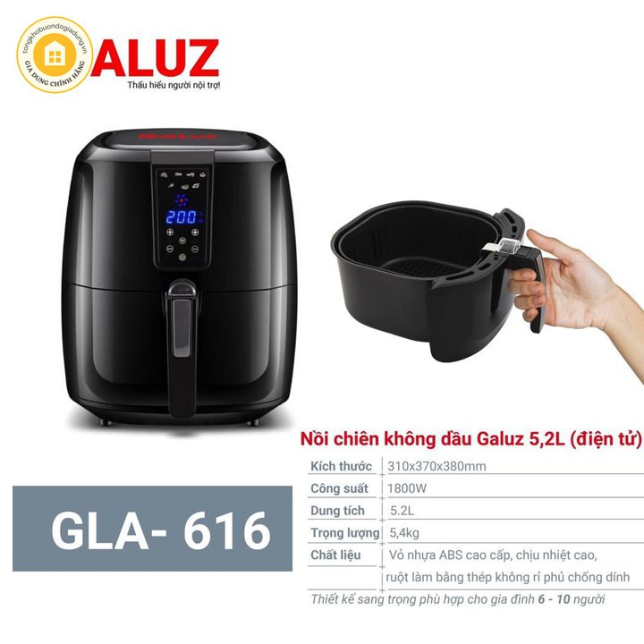 HÀNG HÓT KHÔNG THỂ BỎ QUA🍟🦐🍟Nồi chiên không dầu điện tử Galuz 5.2 LIT GLA-616.Dành cho gia đình nhu cầu dùng nhiều nhé. từ 4-8 người đều ok hết ạ.