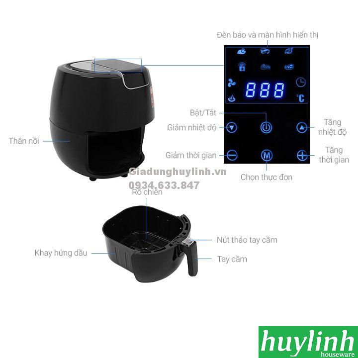 Thông số kỹ thuật Nồi chiên không dầu Mishio MK165 – 5.5 lít