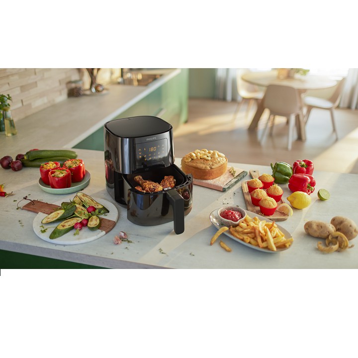 Philips Essential Airfryer mới mở ra một thế giới nấu nướng: chiên rán, nướng bánh, nướng thịt, quay và thậm chí là hâm nóng thức ăn! Chế biến món ăn hoàn hảo mọi lúc, bất kể bạn chọn làm món gì.