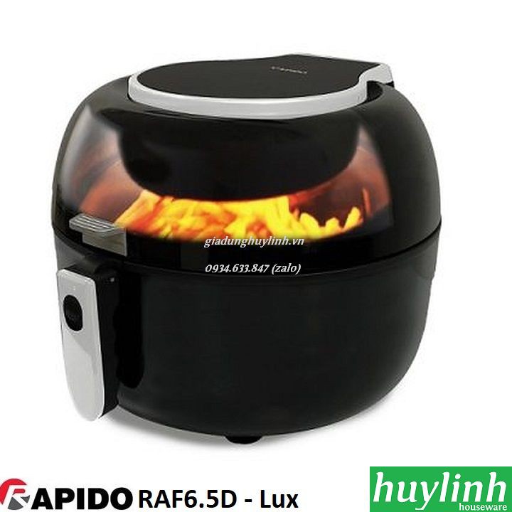 - Nồi chiên không dầu Rapido RAF-6.5D LUX điều khiển điện tử là sản phẩm thương hiệu Đức với dung tích 6.5L giúp chiên rán đồ ăn một cách nhanh chóng, hiệu quả, lành mạnh.