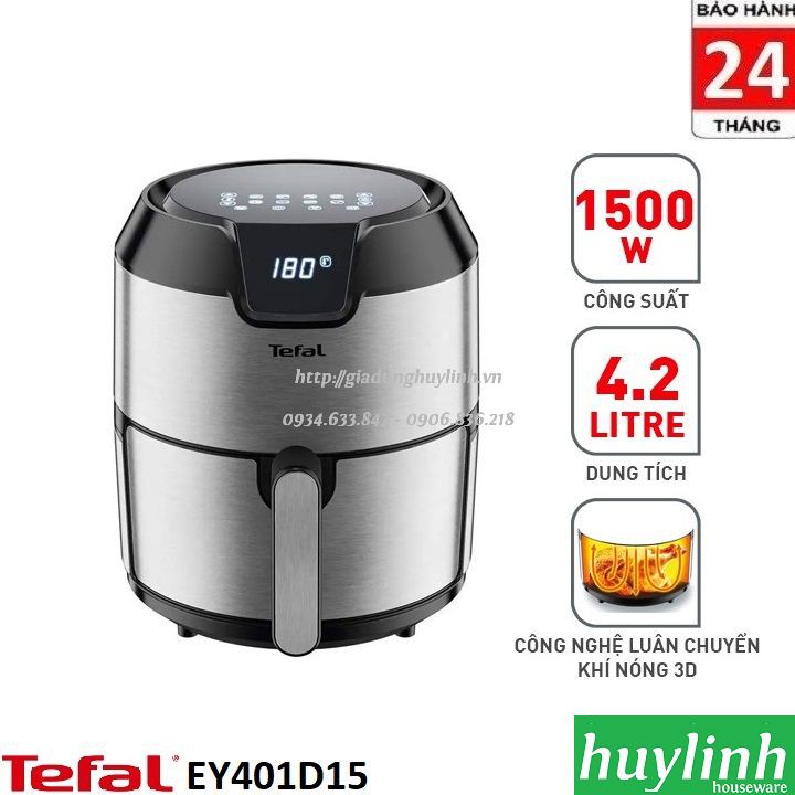 Nồi chiên không dầu Tefal EY401D15 với thiết kế bảng điều khiển bằng điện tử với dung tích 4.2 lít, công suất 1500WHuy Linh phân phối và bảo hành chính hãng tại Tefal Việt Nam