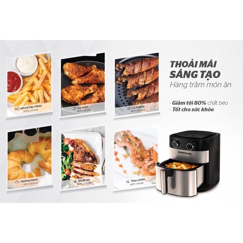 Giới thiệu Nồi Chiên Không Dầu Dung Tích Lớn 6 lít SUNHOUSE SHD4026 Dễ Dàng Vệ Sinh & An Toàn Cho Sức Khoẻ
