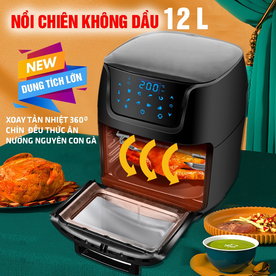 Nồi chiên không dầu dung tích 12L công suất lớn 1800W nút cảm ứng xoay 360 thiết kế sang trong, đồ ăn tốt cho sức khỏe
