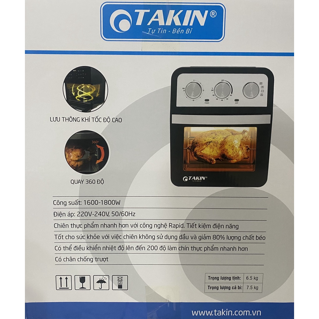 Nồi Chiên Không Dầu Dung Tích Siêu Lớn 12L Takin, Thiết Kế Sang Trọng, Công Nghệ Chiên 360 độ Chín Đều, BH 18 Tháng
