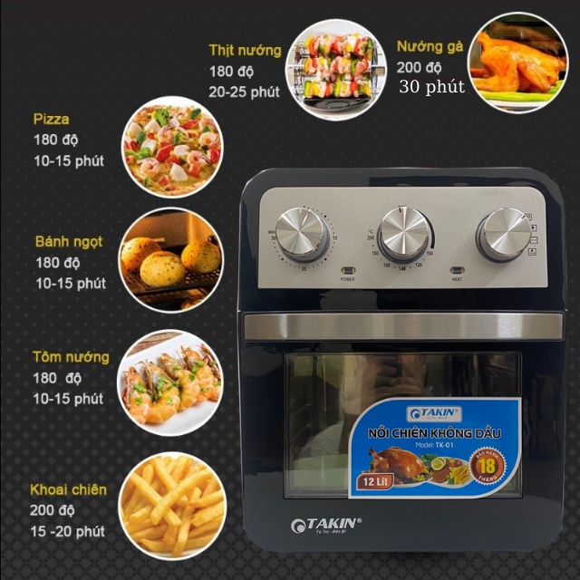 Giới thiệu Nồi Chiên Không Dầu Dung Tích Siêu Lớn 12L Takin, Thiết Kế Sang Trọng, Công Nghệ Chiên 360 độ Chín Đều, BH 18 Tháng
