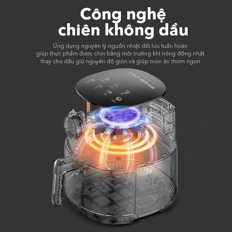 - Ứng dụng nguyên lý nguồn nhiệt đối lưu tuần hoàn giúp thực phẩm được chín bằng môi trường khí nóng đồng nhất thay cho dầu ăn, giữ nguyên độ giòn, giúp món ăn thơm ngon, ít béo.