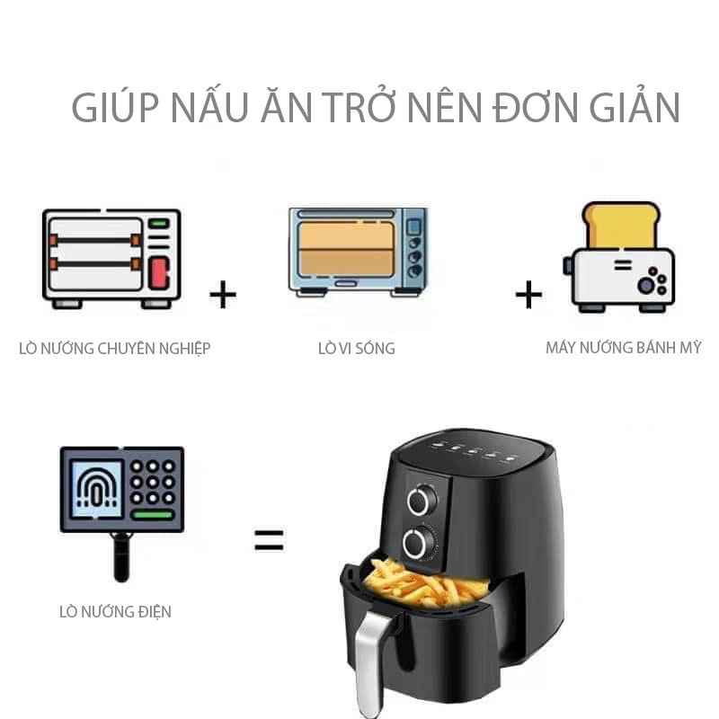 Thiết kế độc đáo của nồi chiên kết hợp luồng khí được làm nóng rất cao lưu thông nhanh, thiết kế hình sao và cấu hình làm nóng tối ưu cho phép bạn rán nhiều món ăn ngon miệng khác nhau theo cách nhanh chóng, dễ dàng và lành mạnh cho sức khỏe mà không cần thêm dầu