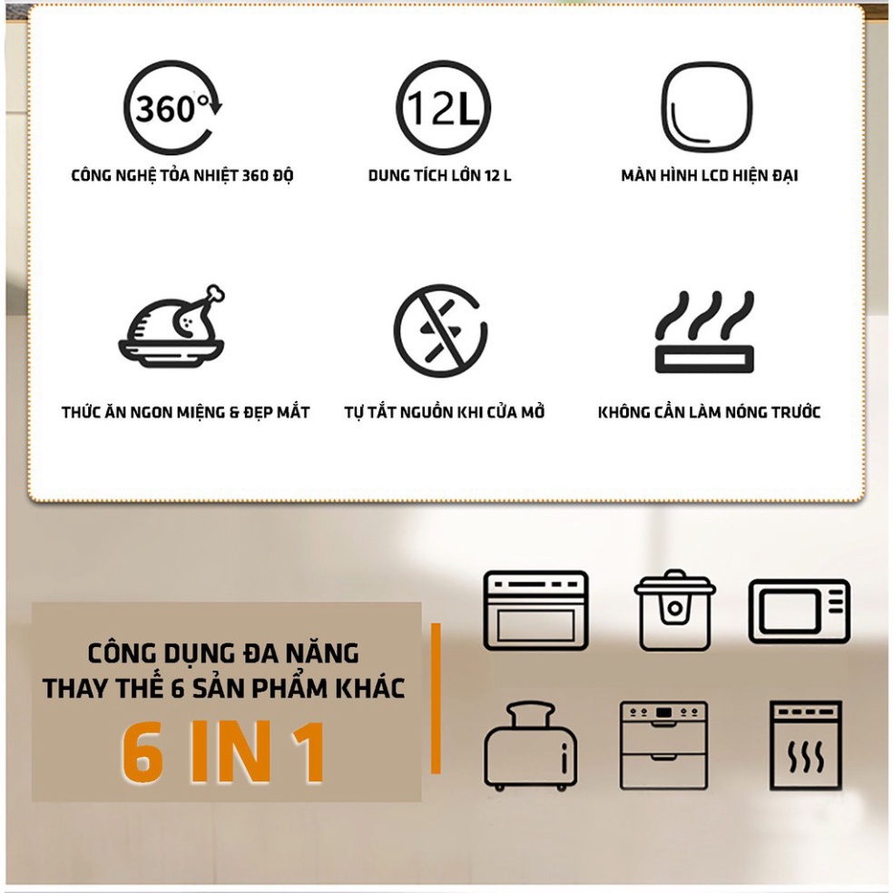 Nồi chiên không dầu DUNG TÍCH LỚN 12L, 1800W - Xoay tản nhiệt 360 độ, không cần lật, đảo thức ăn chiên cả thế giới1. GIỚI THIỆU SẢN PHẨM NỒI CHIÊN KHÔNG DẦU 12L