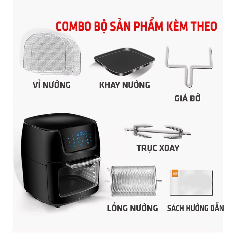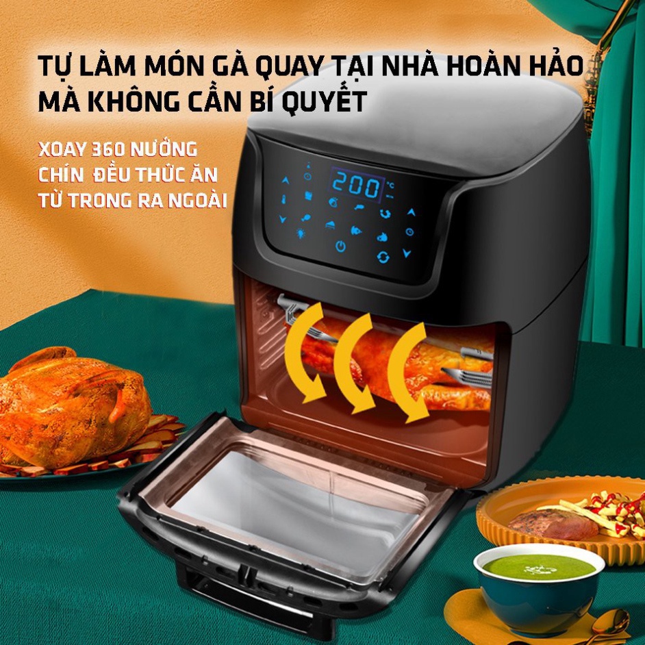Nồi chiên không dầu DUNG TÍCH LỚN 12L, 1800W - Xoay tản nhiệt 360 độ, không cần lật, đảo thức ăn chiên cả thế giới