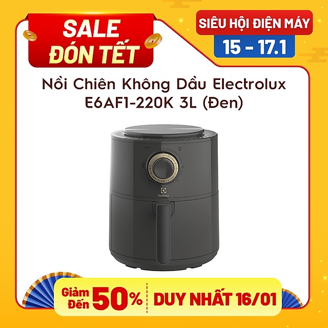 Thiết Bị Điện Gia Dụng > Đồ gia dụng nhà bếp > Nồi chiên không dầu || Nồi Chiên Không Dầu Electrolux E6AF1-220K 3L (Đen) - Hàng Chính HãngCòn hàng