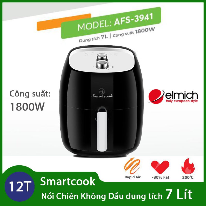 Nồi chiên không dầu Elmich Smartcook AFS-3941 dung tích 7L công suất 1800W màu đen - Hàng chính hãng, bảo hành 12 tháng