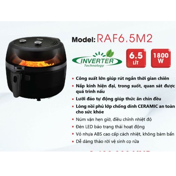 >>Nồi chiên không dầu Rapido RAF6.5D-6.5 LÍT- 1800W (Điều khiển điện tử)