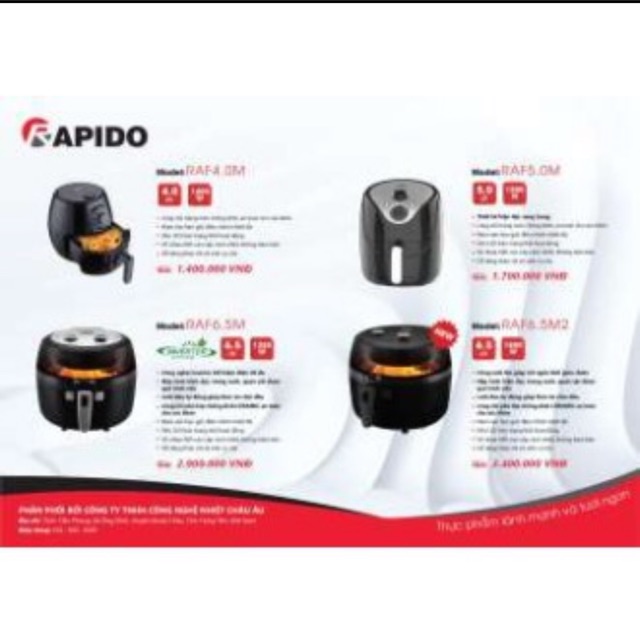 >>Nồi chiên không dầu Rapido RAF6.5M2- 6,5 LÍT -1800W (CƠ)
