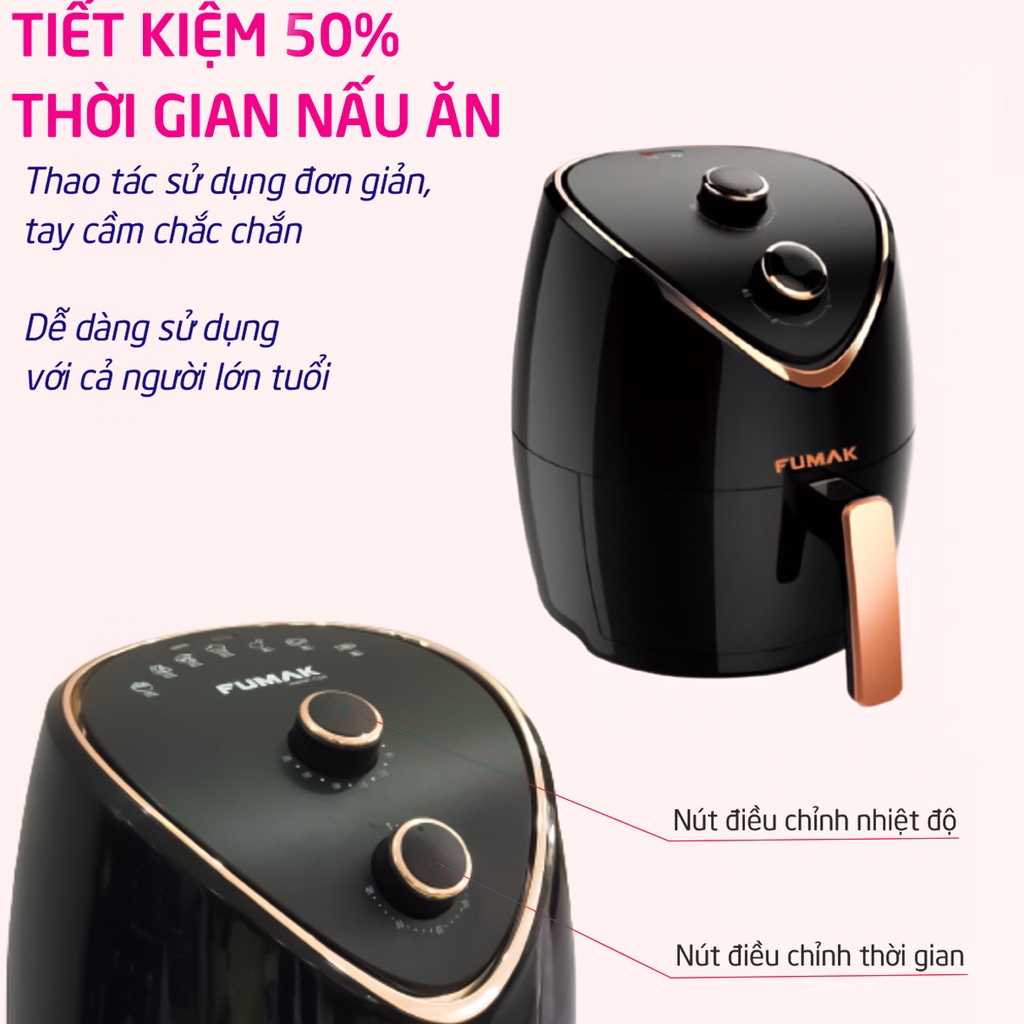 Nồi chiên không dầu Fumak, Bếp chiên không dầu Nhật Bản dung tích 7.5L tiện lợi, tha hồ nấu nướng - 1 đổi 1 BH 18 tháng