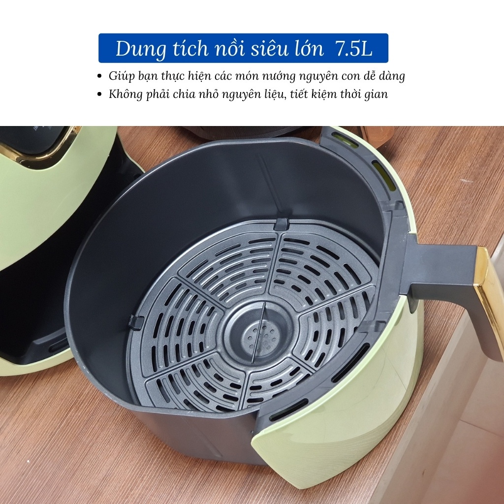 👉 Dung tích lớn 7,5L : Giúp bạn thực hiện các món nướng nguyên con dễ dàng