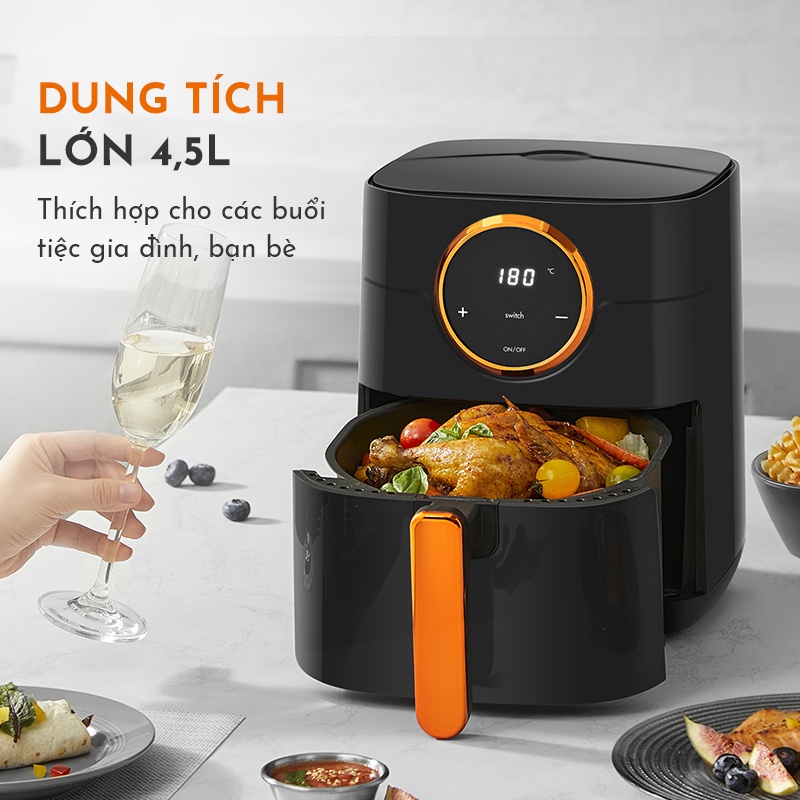 Nồi chiên không dầu GAABOR GA-E45A01 dung tích 4.5L - Thép không gỉ - Giá rẻ - Hàng chính hãng