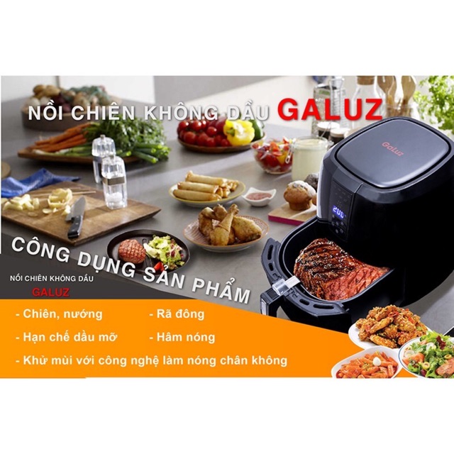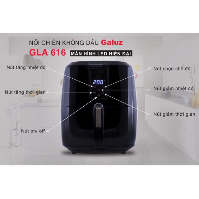 Giới thiệu Nồi chiên không dầu Galuz 5,2l điện tử GLA616 - Tặng Kèm Bình Xịt Dầu Ăn Thủy Tinh