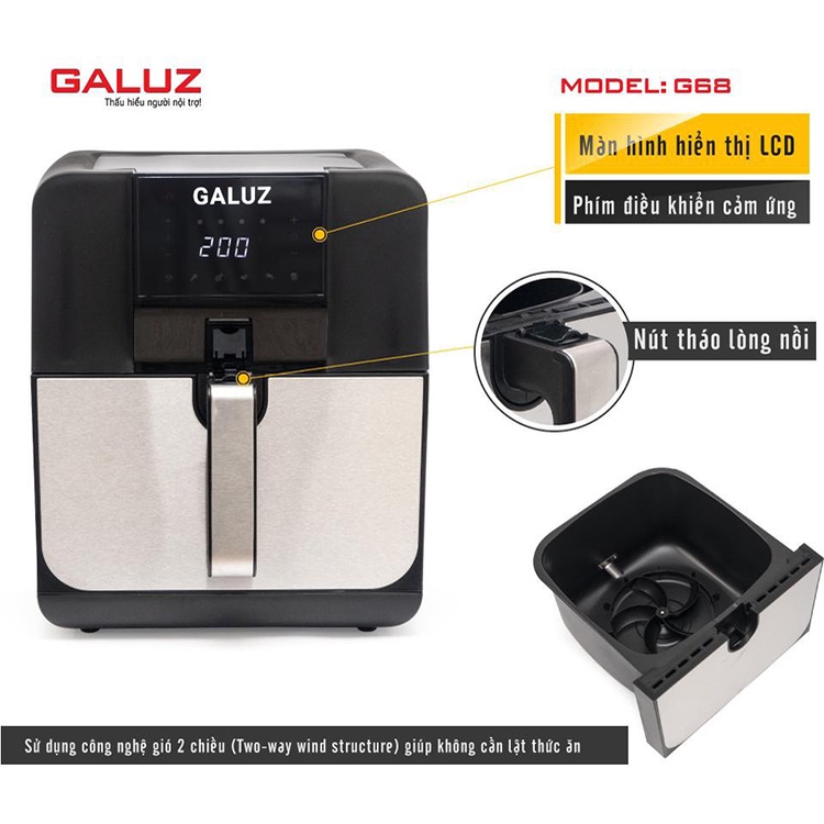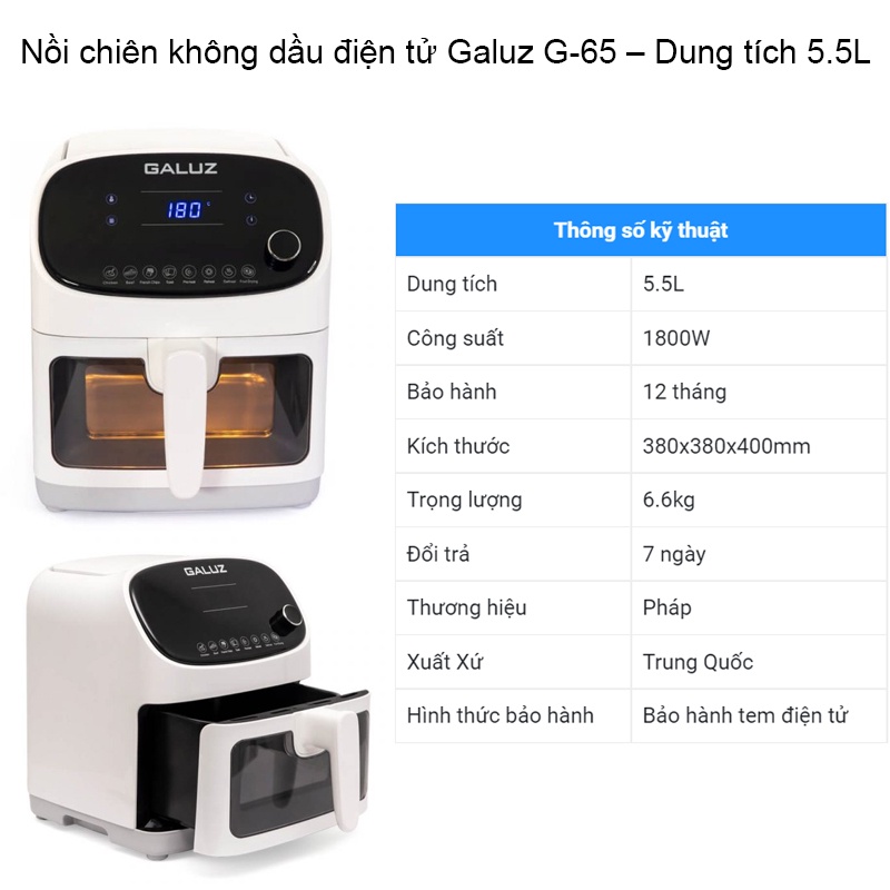 Thiết Bị Điện Gia Dụng > Đồ gia dụng nhà bếp > Nồi chiên không dầu || Nồi chiên không dầu Galuz 5.5L model G-65 & G-68 điện tử dung tích - Hàng chính hãng, Bảo hành 18 thángCòn hàng