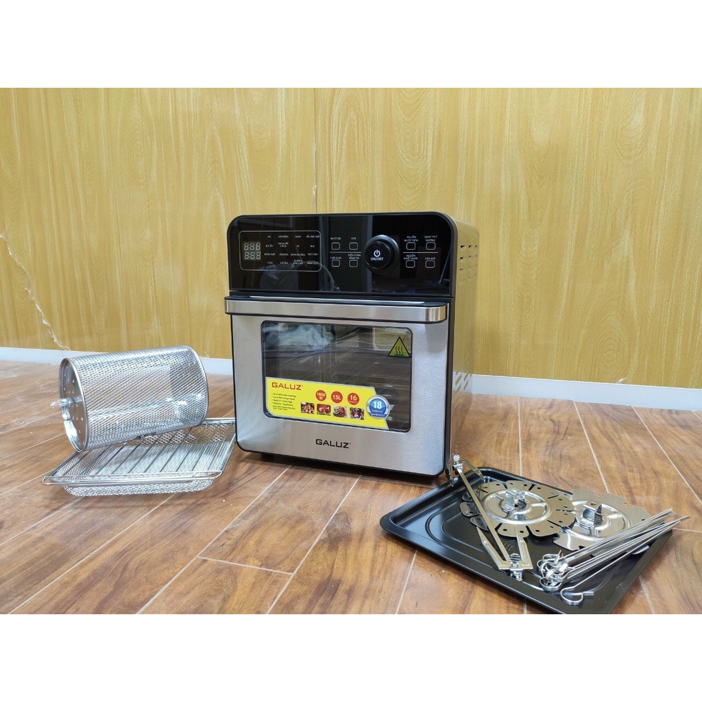 Giới thiệu Nồi chiên không dầu Galuz GLA 1518 thương hiệu Pháp dung tích 15L lớn để được nhiều đồ ăn có 16 Chức Năng nấu ăn cao cấp
