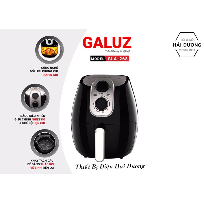 Nồi chiên không dầu GALUZ GLA-268 1500w 4 lít - Loại Bỏ 80% Chất Béo, Chống Dính Hoàn Hảo, Làm Chín Nhanh