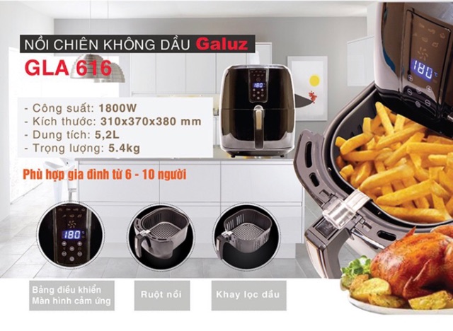 [Mã ELHADEV giảm 4% đơn 300K] Nồi chiên không dầu GALUZ GLA301-GLA615-GLA616