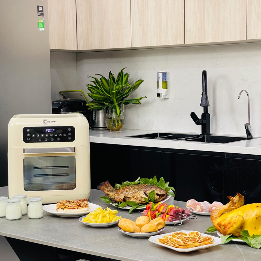 Thiết Bị Điện Gia Dụng > Đồ gia dụng nhà bếp > Nồi chiên không dầu || Nồi chiên không dầu GESUN F150 - Dung tích siêu lớn 12 lít - Thương hiệu Đức - Thịt chín mềm nhờ công nghệ hơi nướcCòn hàng