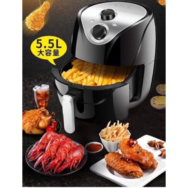- Dung tích thiết kế với dung tích lên đến 5.5 lít giúp bạn có thể chiên nướng thức ăn với khối lượng lớn dành cho