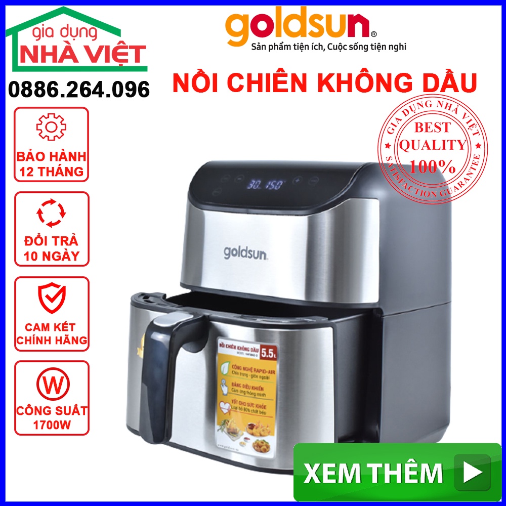 Nồi chiên không dầu Goldsun, Lò chiên không dầu 5.5 lít, 1700W bảo hành 12 tháng, lỗi đổi mới 10 ngày.𝗖𝗔𝗠 𝗞𝗘̂́𝗧 𝗧𝗔̣𝗜 𝗠𝗜𝗦𝗔𝗞𝗜 𝗦𝗛𝗢𝗣: