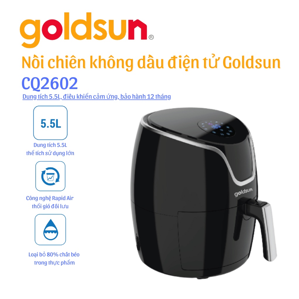 [Mã ELHADEV giảm 4% đơn 300K] Nồi chiên không dầu Goldsun CQ2602 Bảo hành 12 tháng