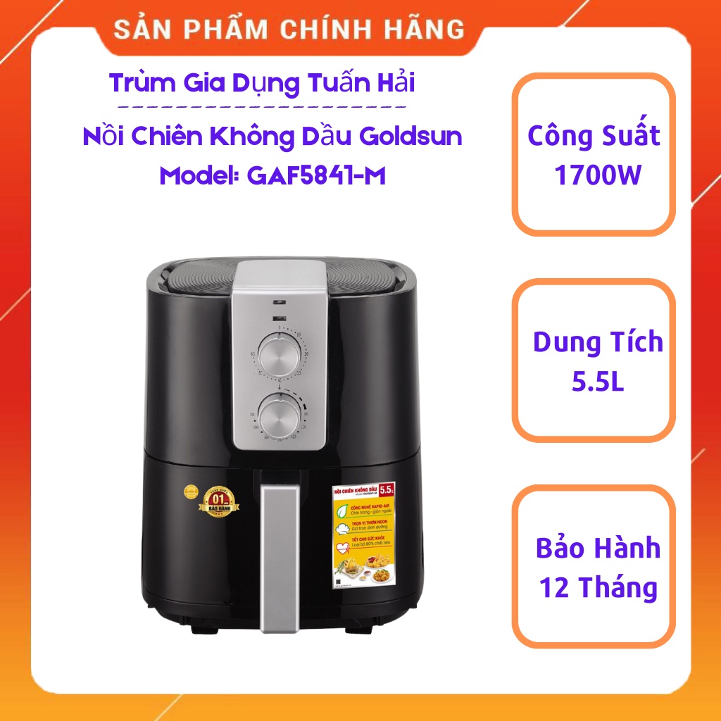 *Nồi chiên không dầu GOLDSUN GAF5841-M, dung tích 5.5L, tự động ngắt điện khi quá tải------------------------------------------
