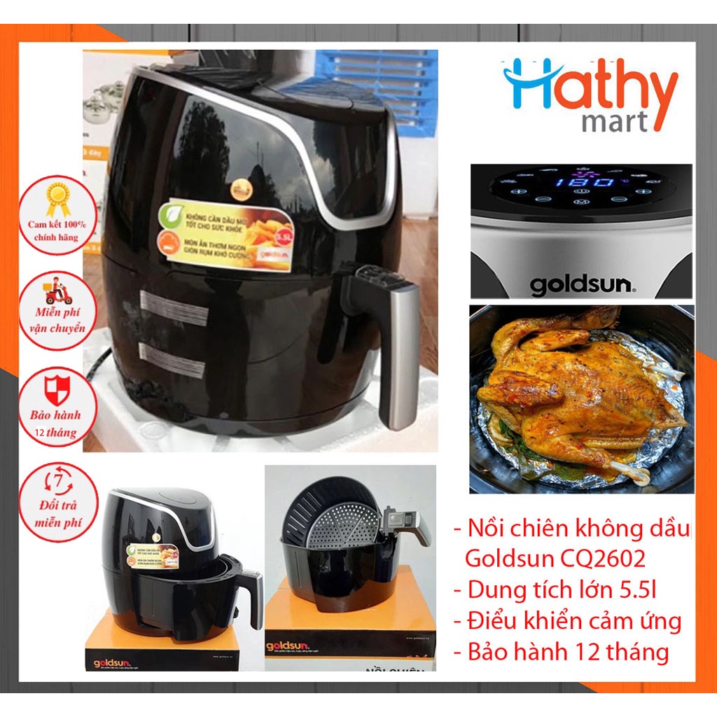 Bạn yêu thích các món ăn chiên xào nướng nhưng lại hạn chế ăn vì sợ quá nhiều dầu mỡ? Bạn thấy khó chịu khi chiên thức ăn dầu văng tung tóe làm bạn bỏng và làm bẩn nhà bếp? Vậy nồi chiên không dầu chính hãng Goldsun CQ2602 sẽ giúp bạn giải quyết vấn đề đó. Đặc biệt chiếc nồi chiên model CQ2602 với dung tích " lớn 5,5l " bạn có thể chiên nướng cả 1 con gà hay số lượng lớn thức ăn chỉ trong 1 lần thật tuyệt phải không nào?Nào bạn hãy cùng Hà Thy Mart tìm hiểu kĩ hơn về nồi chiên không dầu Goldsun CQ2602 này nhé!