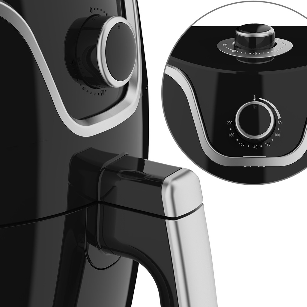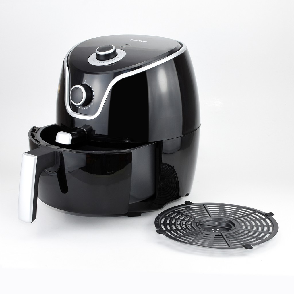 - Bạn sẽ dễ dàng điều chỉnh nhiệt độ và thời gian nấu phù hợp với 2 núm xoay tiện dụng. Nồi chiên không dầu Goldsun giúp bạn tiết kiệm thời gian nấu nướng. Thực phẩm chín đều nhanh chóng nhờ nhiệt độ máy lên tới 200 độ.