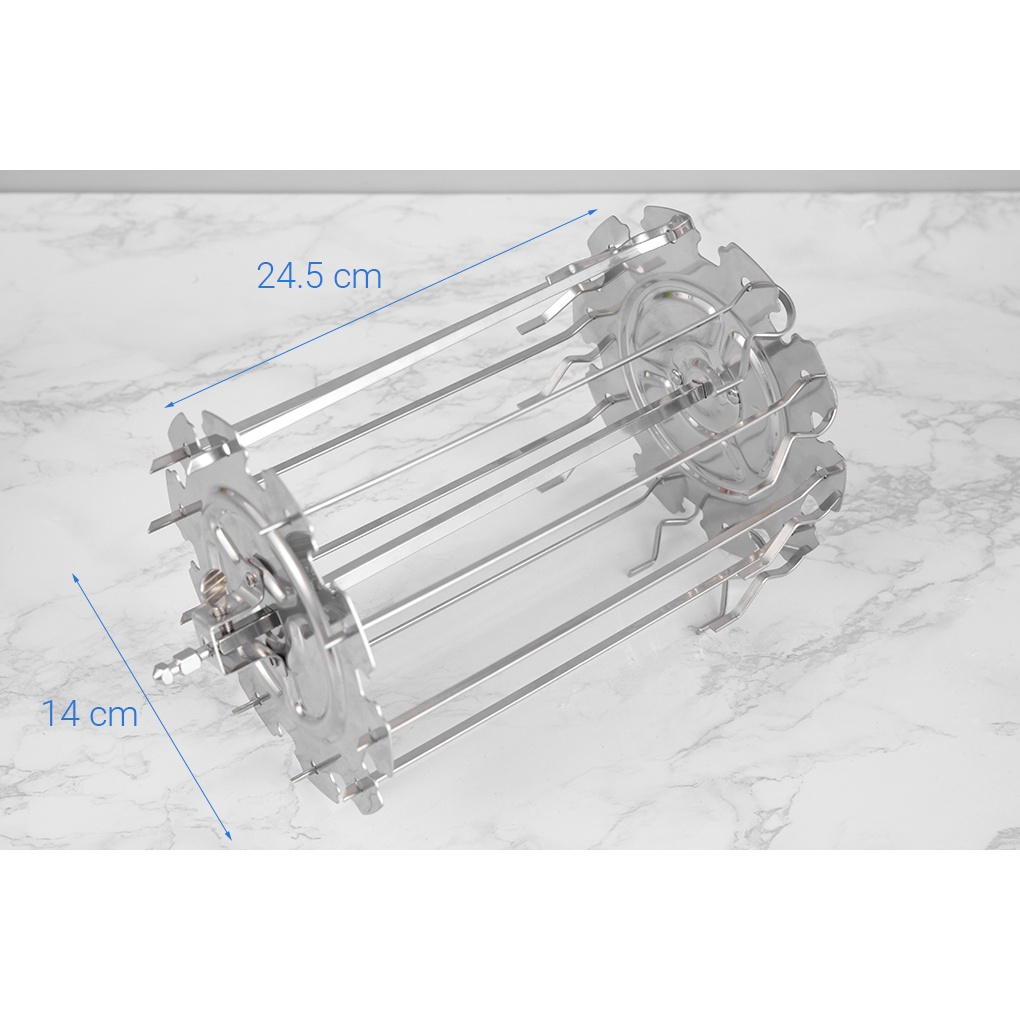 Sản phẩm trang bị bộ phụ kiện đầy đủ (Giỏ chiên khoai tây, xiên nướng BBQ, xiên nướng gà,...) hỗ trợ nấu được nhiều thức ăn khác nhau. Khay nướng phủ lớp chống dính hạn chế bám dính thức ăn và dễ vệ sinh. Bộ cửa kính trong suốt, tích hợp đèn halogen dễ dàng nhìn thực phẩm bên trong.