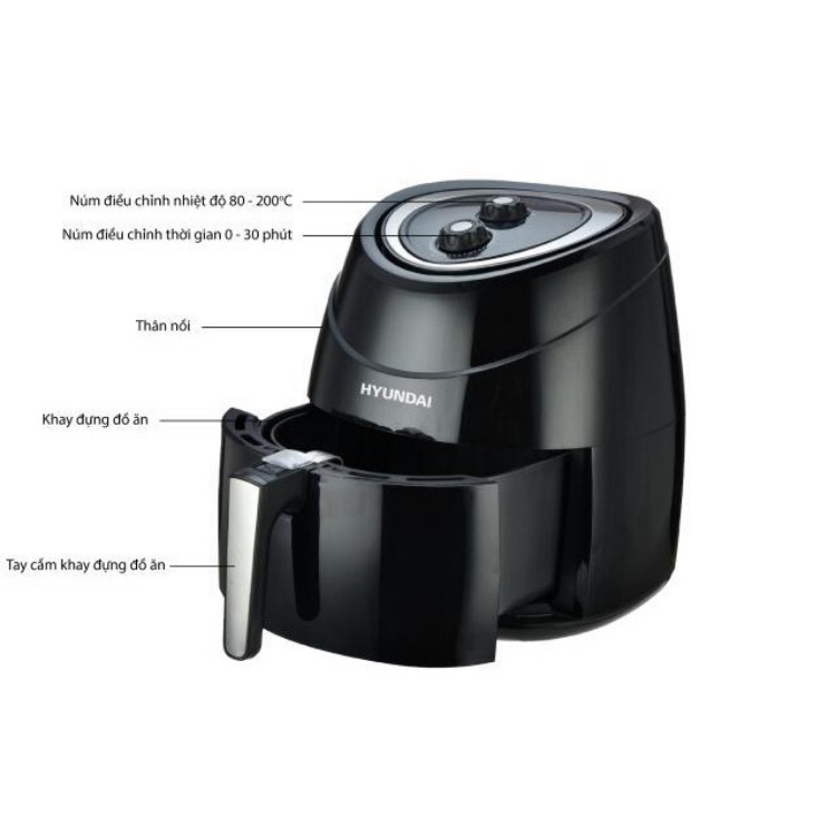 Nồi chiên không dầu ra đời tạo bước phát triển to lớn trong công cuộc nấu nướng của các bà nội trợ. Nồi sử dụng công nghệ chiên nướng chân không Rapid Air kết hợp cánh quạt tản nhiệt, thực phẩm được làm chín nhờ tiếp xúc 360 độ với các luồng khí nóng.Nồi chiên không dầu Hyundai là sản phẩm được sản xuất bởi công ty thiết bị gia dụng số 1 Hàn Quốc Quá trình sản xuất, lắp ráp được thực hiện trên dây chuyền công nghệ hiện đại, dưới sự giám sát của các chuyên gia đầu ngành.
