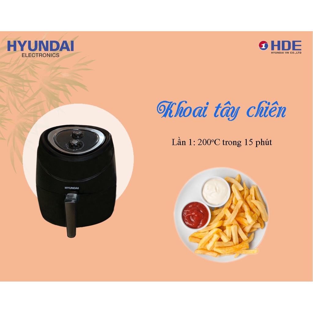 Thiết Bị Điện Gia Dụng > Đồ gia dụng nhà bếp > Nồi chiên không dầu || Nồi chiên không dầu Hàn Quốc Hyundai công nghệ tản nhiệt làm chín 360 HDE 3200 - Dung tích 5,5 lítCòn hàng