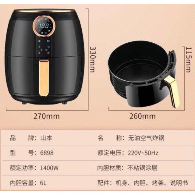 Thiết Bị Điện Gia Dụng > Đồ gia dụng nhà bếp > Nồi chiên không dầu || [Mã 273ELHA100K0 hoàn 7% đơn 500K] NỒI CHIÊN KHÔNG DẦU HÃNG SHANBEN ĐIỆN TỬ 6898 DUNG TÍCH 6 LÍTCòn hàng