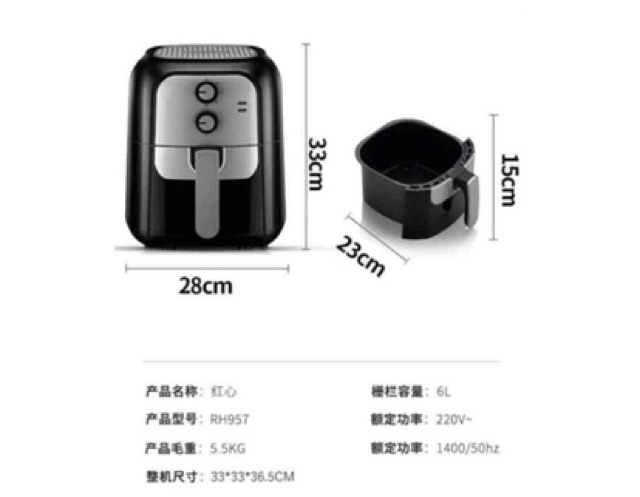 Chi tiết sản phẩm nồi chiên không dầu hãng hongxin RH957Hãng hongxin chuyên về hàng gia dụng . Nổi tiếng của Trung Quốc hãng thành lập từ năm 1943 . Hàng nồi chiên KHÔNG dầu của hongxin là hàng nội địa của Trung Quốc chất lượng như hàng Philips mà giá chỉ bằng 1/3 của Philips. Thông tin sản phẩm: