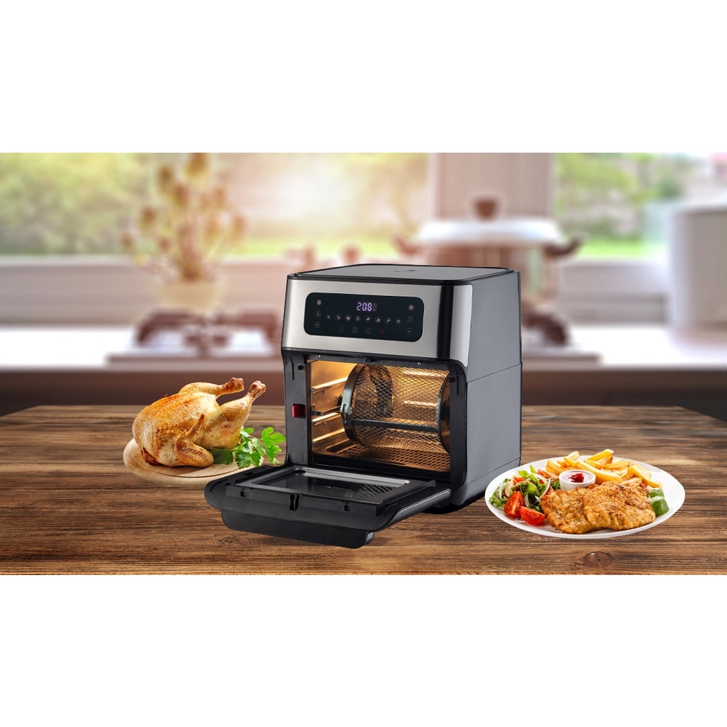 - Phụ kiện: 2 khay lưới, 1 khay hứng, 1 thanh xiên roti, 1 tay cầm tháo roti, giỏ lưới xoáy
