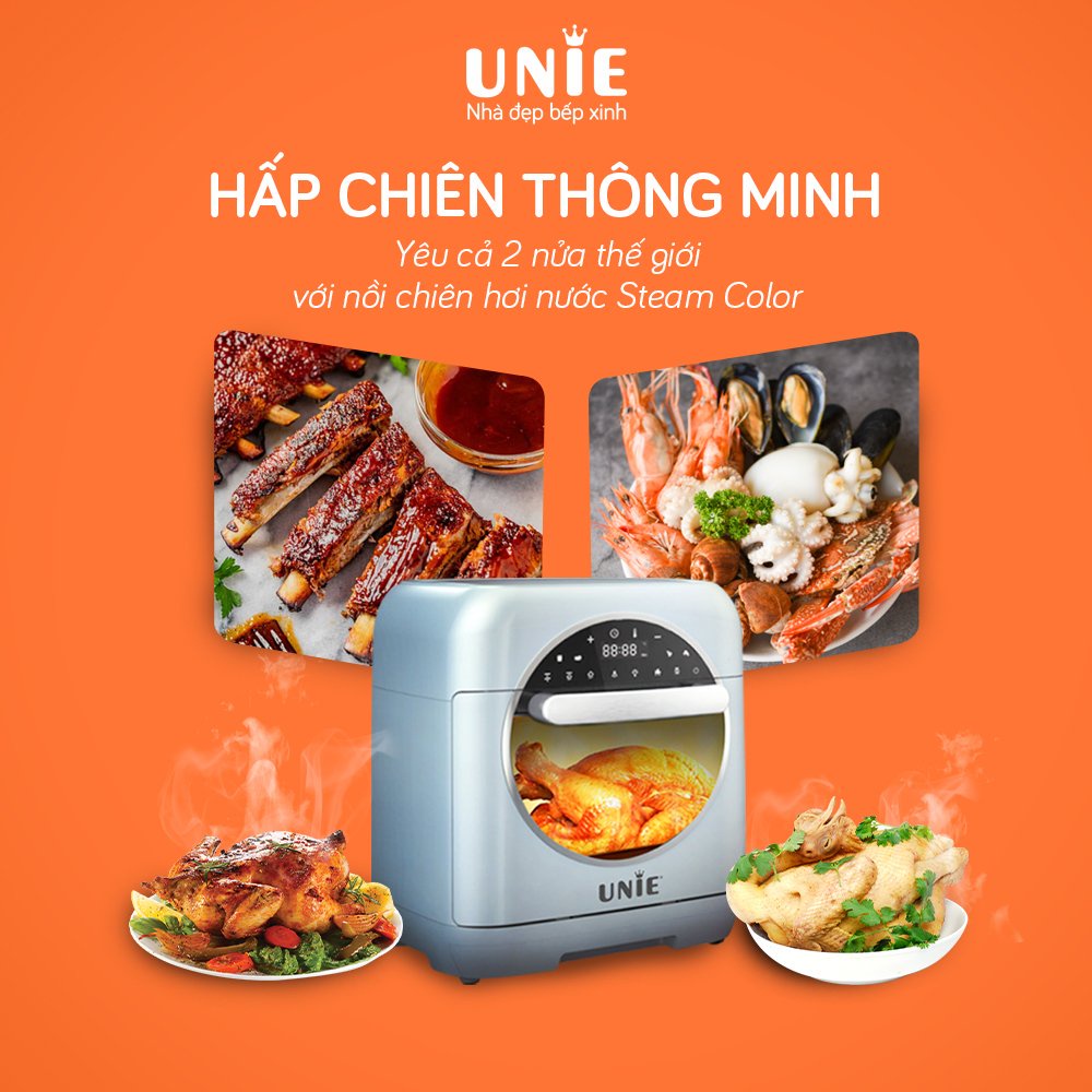 Nồi chiên không dầu hơi nước UNIE STEAM COLOR, Tính năng đa dạng : Chiên,Hấp,Nướng, Cửa kính 2 lớp, Bảo hành 12 thángCAM KẾT CHÍNH HÃNG