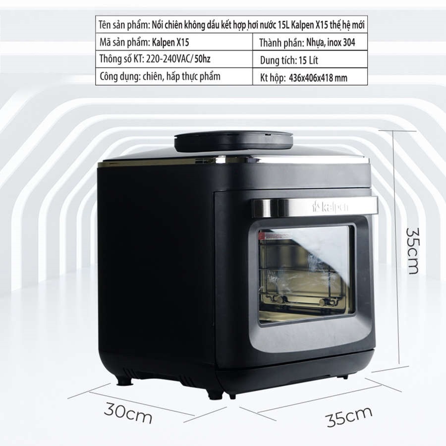 Nồi Chiên Không Dầu Hơi Nước Công Nghệ Mới Chiên Hấp Hơi Nước Kalpen X15 Dung Tích 15 Lít