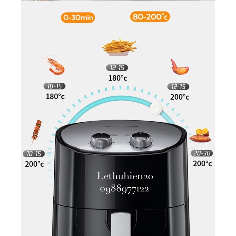 - Chức năng hẹn giờ tích hợp cho phép bạn đặt sẵn thời gian nấu lên đến 30 phút. Điều khiển nhiệt độ có thể điều chỉnh cho phép bạn đặt trước nhiệt độ nấu phù hợp với thức ăn lên đến 200 độ C.4.5