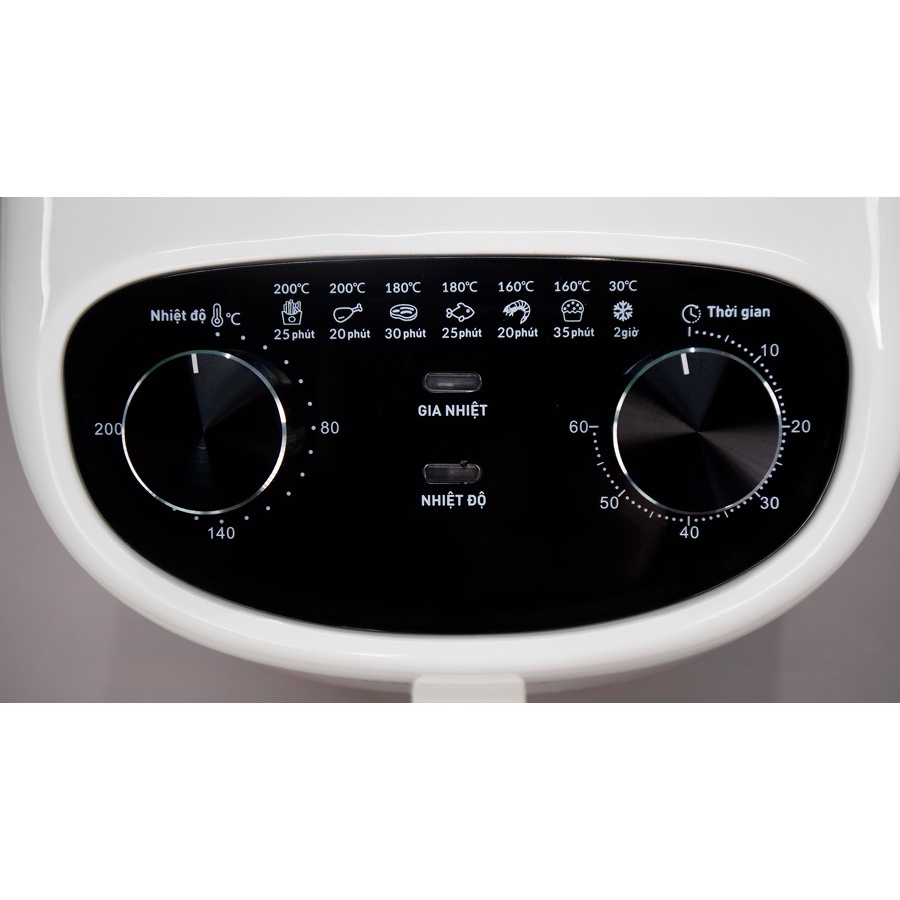 Kiểu dáng bo viền độc đáo với thiết kế tai thỏ là đặc trưng của dòng sản phẩm này. Sản phẩm nồi chiên không dầu được thiết kế với 2 núm diều khiển cơ bên trên rất tiện lợi. Vỏ làm bằng nhựa nguyên sinh an toàn cho sức khỏe.