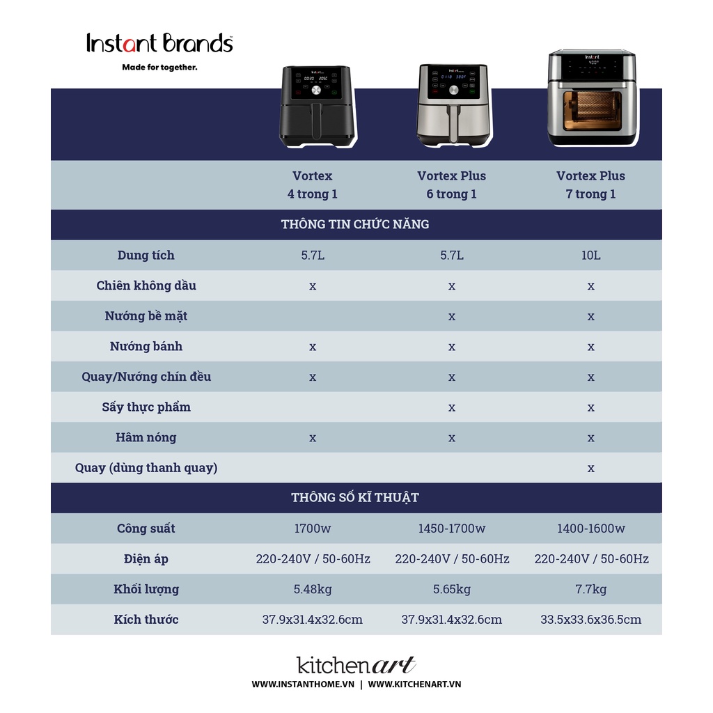 INSTANT BRANDS - thương hiệu uy tín và liên tục lọt vào danh mục “Amazon’s choice”, “Best-seller” với tổng bình chọn 4,5/ 5 sao với hàng nghìn lượt đánh giá tích cực trên kênh bán lẻ uy tín và lớn nhất thế giới - amazon.com, NỒI CHIÊN KHÔNG DẦU INSTANT VORTEX xứng đáng là một sản phẩm góp mặt trong căn bếp nhà bạn.