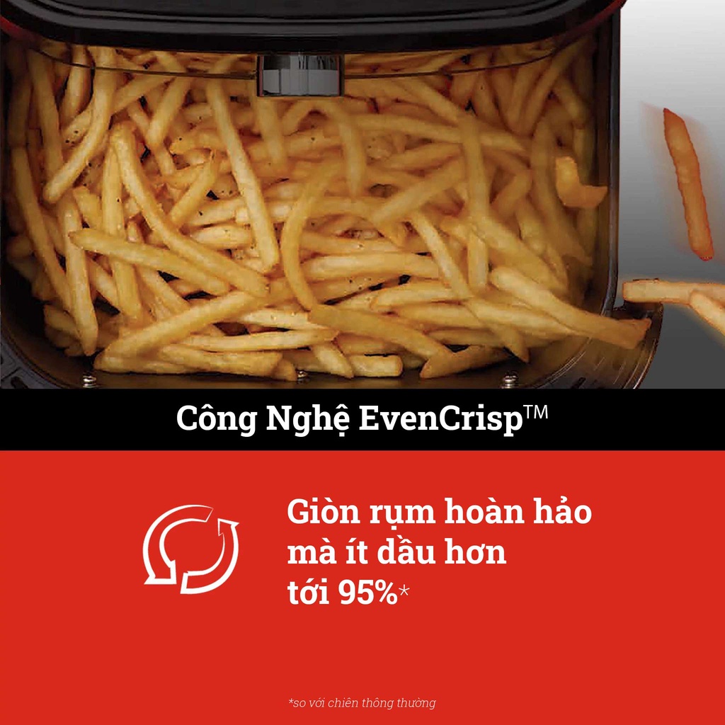Các bữa ăn nhanh chóng và ngon miệng, sử dụng ít dầu và mỡ hơn 95% so với chiên ngập dầu. Thưởng thức mọi hương vị phong phú của món chiên giòn, không dầu, mỡ và nhem nhuốc, với thành phẩm mỗi lần đều hoàn hảo, giòn ở bên ngoài, mềm ở bên trong